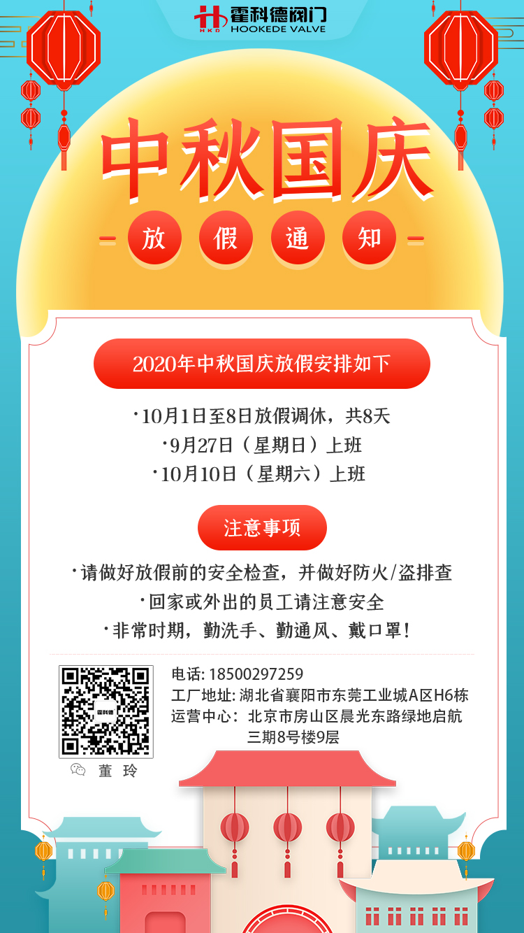 敬的客戶們:疫情常態(tài)化防控的當下,我們迎來了中秋節(jié)與國慶節(jié)雙節(jié),在這個特殊的節(jié)日里,為了您能合理安排貨期,度過一個平安喜樂的假期,現(xiàn)將雙節(jié)放假時間及注意事項通知如下:
